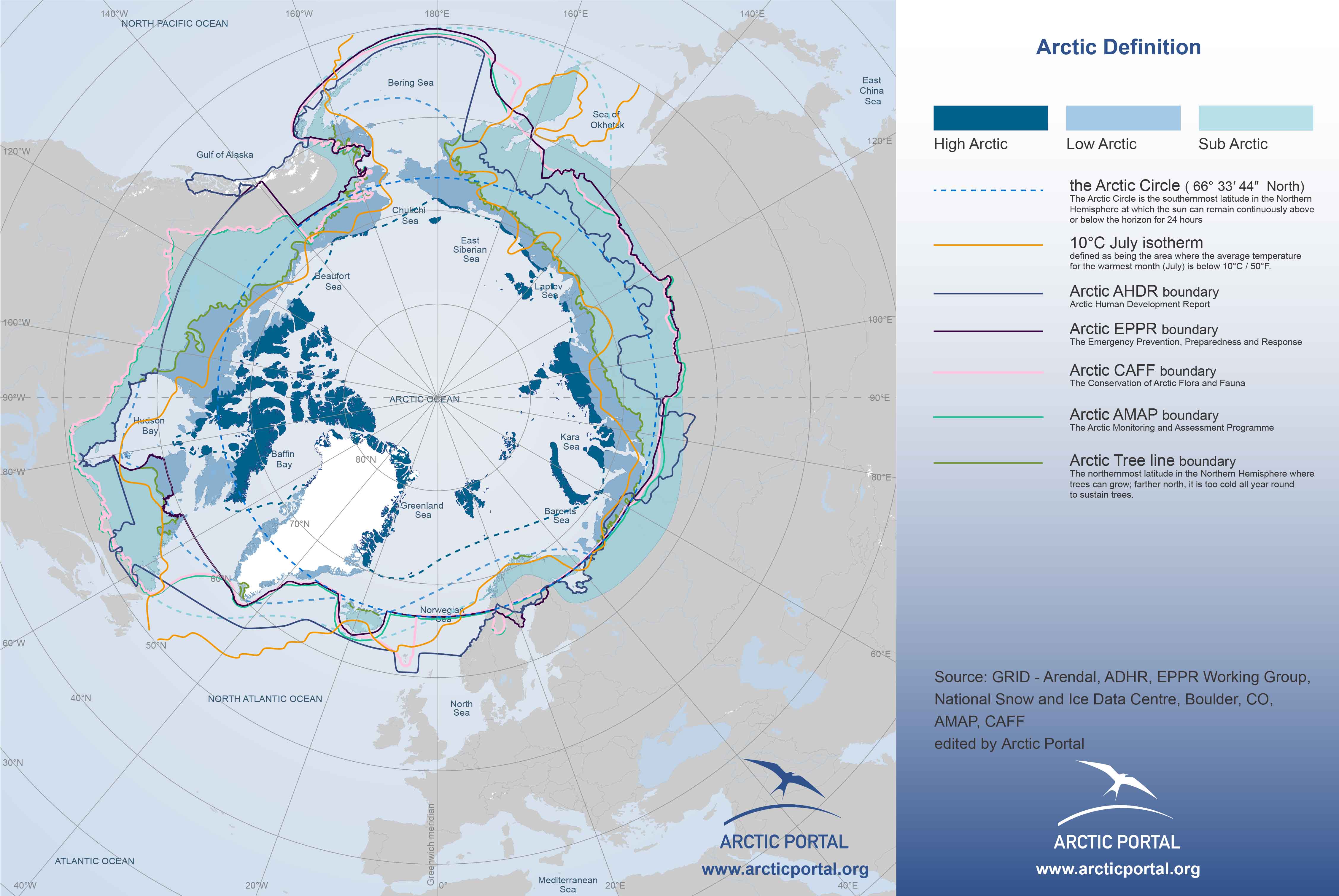 “The Arctic” can be defined differently, but the definition provided by the 2004 Arctic Human Development Report is most commonly used because it takes into consideration cultural, historical, and political boundaries: