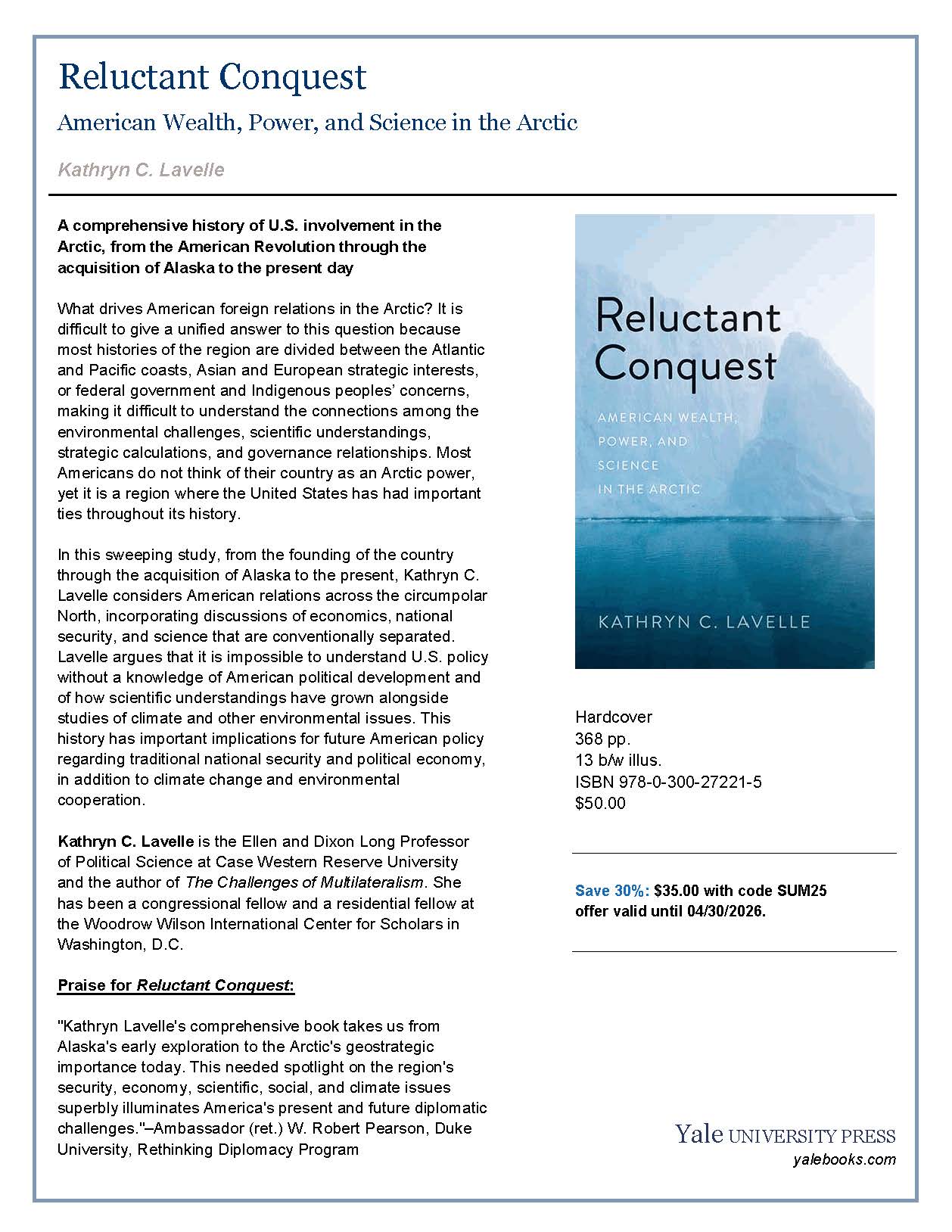 A newly released book, Reluctant Conquest: American Wealth, Power, and Science in the Arctic, by Kathryn C. Lavelle, offers a sweeping history of the United States’ evolving relationship with the Arctic. From the American Revolution through the acquisition of Alaska to the present day, Lavelle traces how economic interests, scientific exploration, and strategic concerns have shaped American engagement in the region.