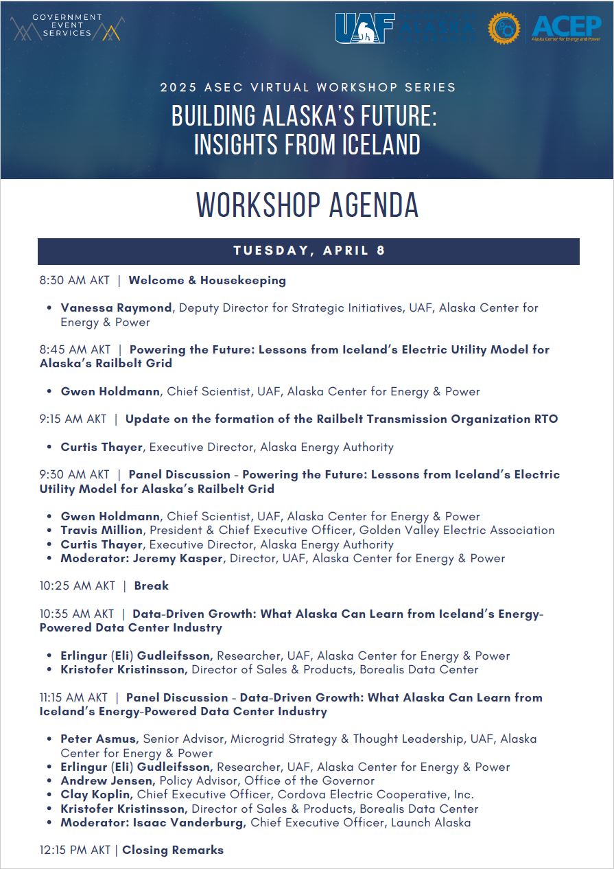 Do not miss this opportunity to engage with experts and policymakers shaping Alaska’s energy and economic future. Register now for Workshop 2: Building Alaska’s Future: Insights from Iceland and join the conversation on April 8-9.