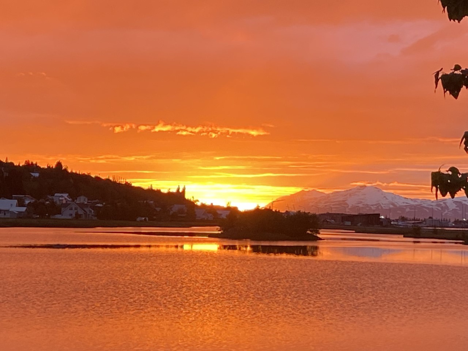 Arctic Portal´s Fanney Ingvadottir was up late in Akureyri last night and recorded the spectacular sunset and its show of colours at the mouth of Eyjafjordur, wich opens just shay of the Arctic Circle.
