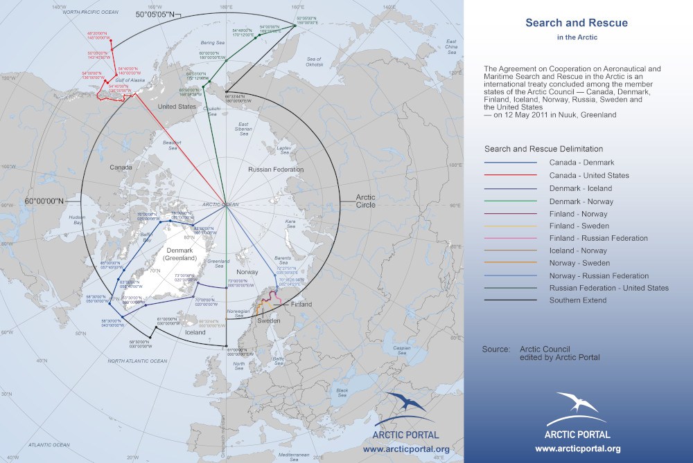 The Agreement on Cooperation on Aeronautical and Maritime Search and Rescue (SAR) in the Arctic, hence Arctic Search and Rescue Agreement, was concluded and implemented internationally under the auspices of the Arctic Council. It aimed for the coordination of the international search and rescue operations.